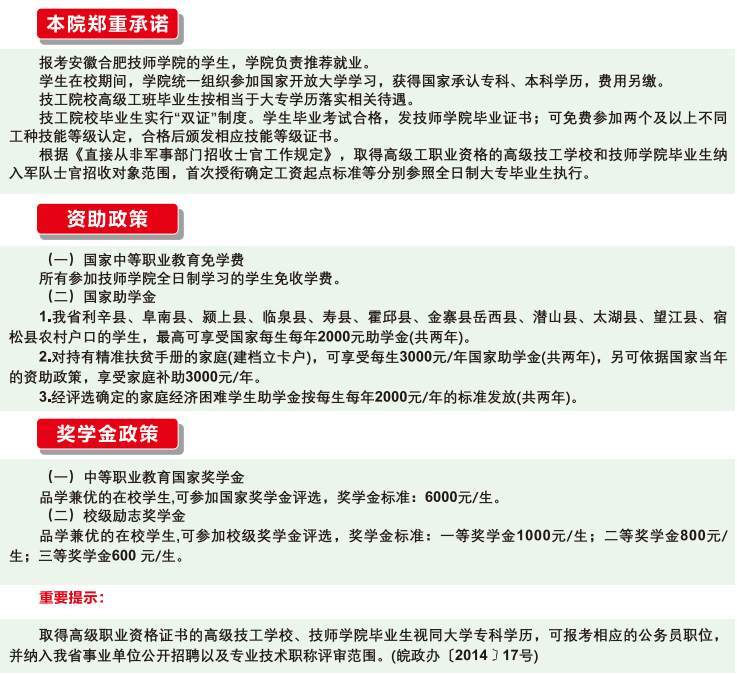 注:学院实行“面试+分数”登科,面试调查脱手能力取进修志愿,分数做为参考;家庭经济坚苦或有技术特长(如汽车维修、计较机编程根本)的学生,可恰当降低分数要求。双证轨制:结业时可获得技师学院结业证书+高级工职业资历证书,可加入两个及以上分歧工种技术品级认定(如“工业机械人”+“电工”),添加就业合作力。国度帮学金:家庭经济坚苦学生可申请,每年2000元(共两年);建档立卡贫苦户学生额外享受每年3000元家庭补帮;学金:品学兼优者可申请国度学金(6000元/生)或校级学金(一等1000元、二等800元、三等600元)。