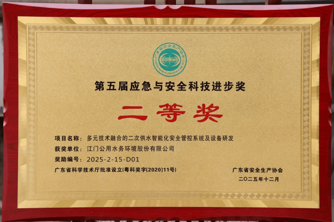 深化水务环保范畴手艺立异,“多元手艺融合的二次供水智能化平安管控系统及设备研发项目”无效提拔二次供水泵房智能化和平安管控程度,并荣获第五届广东省平安出产协会应急取平安科技前进。