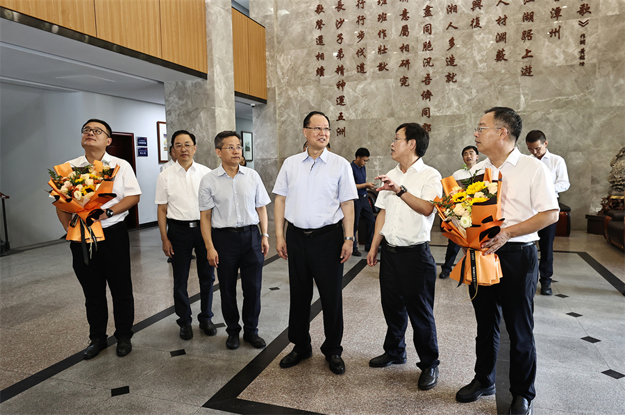 正在长郡中学,毛伟明一行细致领会学校成长过程、人才培育、探望慰问学校原党委翁光龙、化学国际奥林匹克竞赛金牌锻练宋晓,他们阐扬好名优特师的“传帮带”感化,引领教师持续提拔启智润心、因材施教的能力本事,推进每个孩子自傲出彩、健康成长。