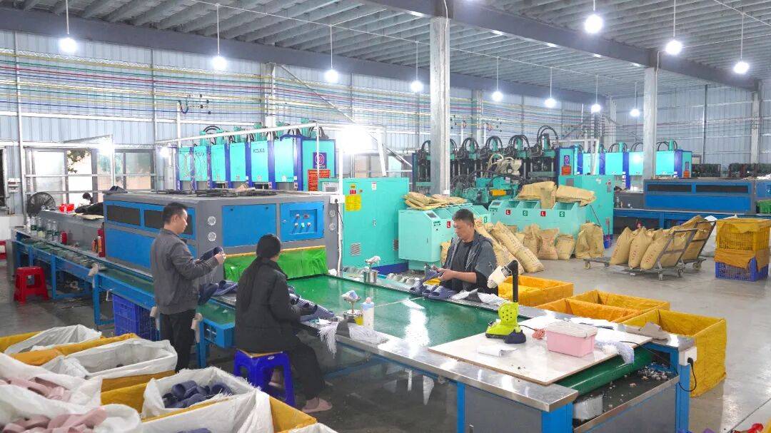 当前正值发卖旺季,来自全国各地的专业买手穿越其间,有的俯身细察鞋底纹,有的手持样品取营业司理深切洽商。这幅供需两旺的场景,活泼注释着“中国塑料鞋之都”的产物远销全球50多个国度和地域的实力取魅力。“这边展架上的都是最新研发的格式,采用EVA材质,兼具简便、耐磨和防滑特征。”顺通鞋业担任人李志毅随手拿起一双厚底洞洞鞋向客户引见道。吴川塑料鞋财产成功实现了从量变到量变的逾越。目前,该财产已成立起涵盖十大品类、超200个品种、2000余格式的多元化产物系统,并培育了200多个自从品牌,为“吴川制制”的绿色质量供给了无力支持。从博铺街道放眼全局,再聚焦至城北工业园的具体实践,吴川塑料鞋财产的转型升级径变得清晰可见。驶入园区,“中国塑料鞋之都”的财产气味劈面而来,全兴、原森、万全等企业招牌正在道两旁次序递次呈现,它们不只代表着吴川塑料鞋的出产力量,更以集聚成长的形态,配合这片热土从“单打独斗”到“链式协同”的升级之。