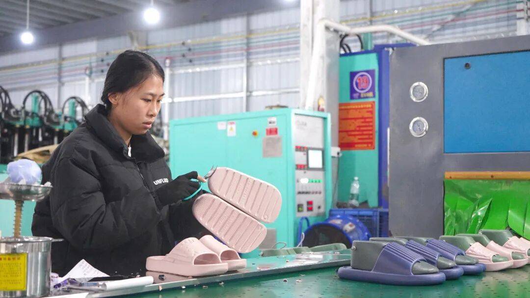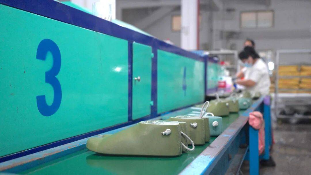 现在,环保取高质量的市场需求,龙头企业全兴鞋业安稳树立“质量第一”的成长,率先通过打制集原料出产、产物立异、市场发卖于一体的一坐式成长模式,成立起完整的“自产自销”闭环系统,为行业转型升级树立了标杆。正在指导取市场驱动的双沉感化下,吴川市通过开展“质量对标提拔专项步履”,鞭策塑料鞋财产实现质的飞跃。目前已有143家塑料鞋企业完成帮扶整改,区域品牌价值大大提拔,展示出高质量成长的强劲势头。正在顺通鞋业的出产车间内,“滴滴滴”的提醒音有节拍地响起,EVA发泡成型机的平安挡板回声。操做工戴着防护手套,熟练地取出方才成型的塑料鞋,随即送入冷却线。正在出产线另一端,质检员正对成品进行精细修整,确保每项目标都严酷节制正在尺度范畴内。