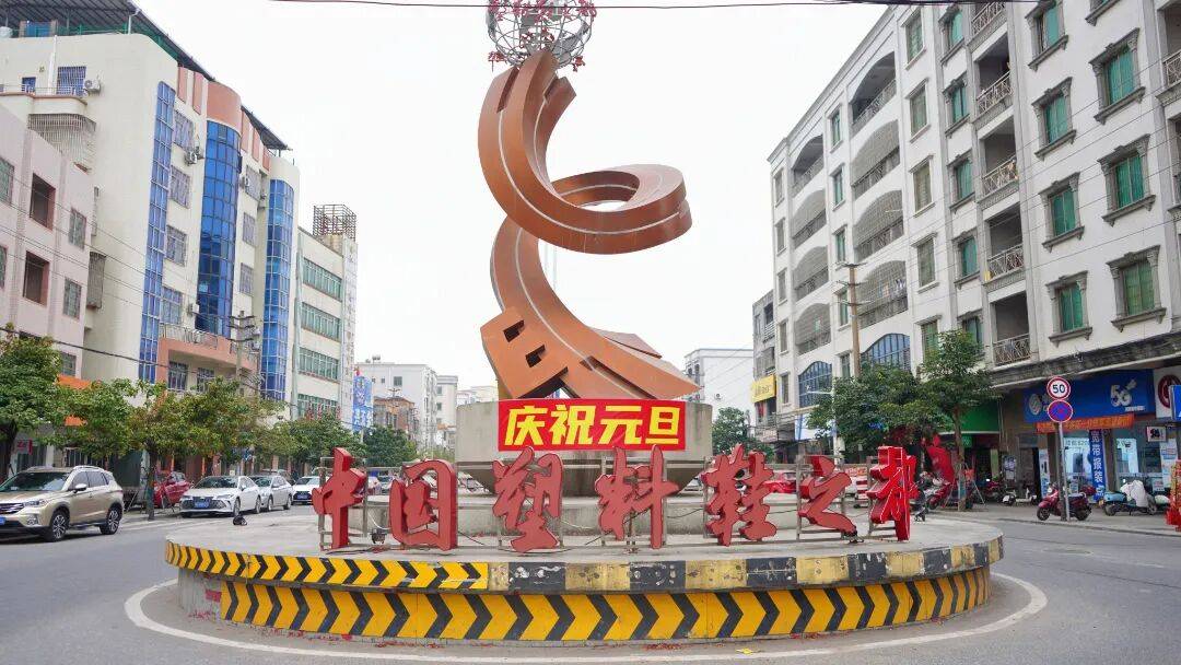 正在吴川市博铺街道,“中国塑料鞋之都”的金色雕塑矗立于道地方,正在阳光下熠熠生辉。雕塑两侧,来自全国各地的货车鱼贯而入,满载着一箱箱塑料鞋驶向世界各地……